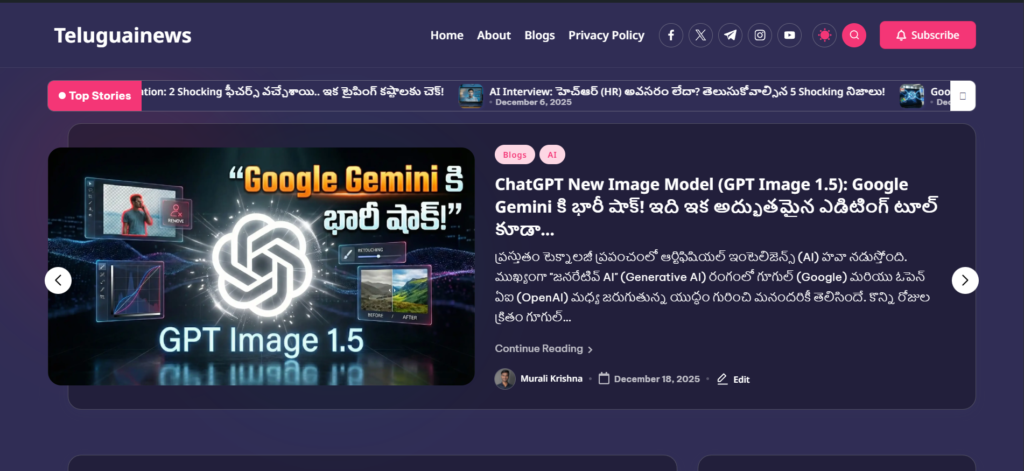 A dedicated tech news platform delivering the latest updates on Artificial Intelligence in Telugu. Optimized for fast reading and easy navigation across categories.